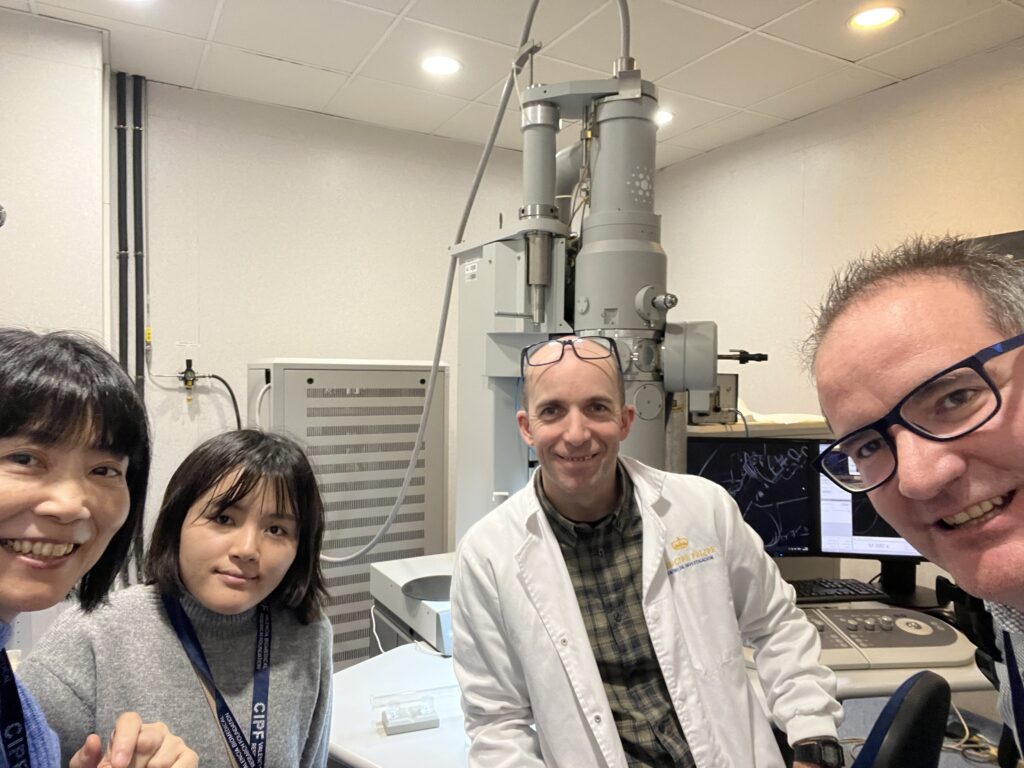 バレンシア市内にある研究施設 CIPF (Centro de Investigación Príncipe Felipe: CIPF) で電子顕微鏡サンプルの観察をしました。西島さんのSPRING報告用に、共同研究者のVicente・技術職員のMarioに写真に入って頂きました。